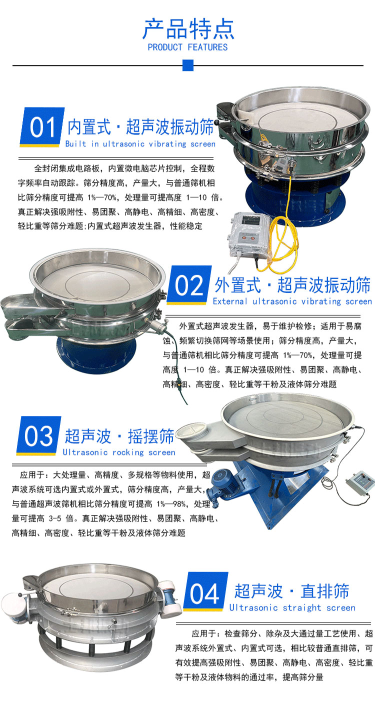 • 超声波振动筛(外置式发生器)超声波振动筛(外置式发生器)